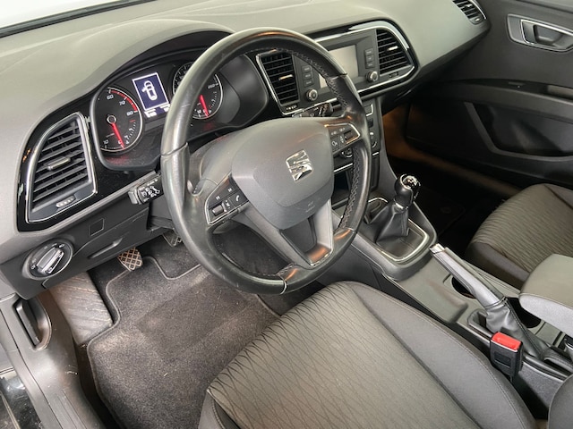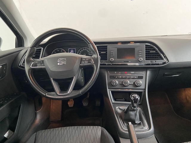 Deze SEAT Leon ST is 'connected'. Belangrijke functies worden permanent gemeten en zijn uit te lezen via een speciale app, ook op afstand. Met de knoppen op het stuur regelt u het audiosysteem en het navigatiesysteem, terwijl u uw blik op de weg gericht houdt. De auto is ook uitgevoerd met automatische airconditioning. Parkeersensoren ondersteunen u tijdens het in- en uitparkeren. In deze SEAT kunt u zich concentreren op het verkeer, terwijl de auto de omgeving voor u in de gaten houdt. Een automatisch inschakelbare verlichting zorgt dat de verlichting aangaat als het donkerder wordt - in tunnels bijvoorbeeld - en de regensensor schakelt de ruitenwissers in als het nodig is. U hoeft er niets aan te doen. Met cruise control, automatisch dimmende binnenspiegel, centrale deurvergrendeling met afstandsbediening, boordcomputer en lederen versnellingspook is deze SEAT helemaal compleet.