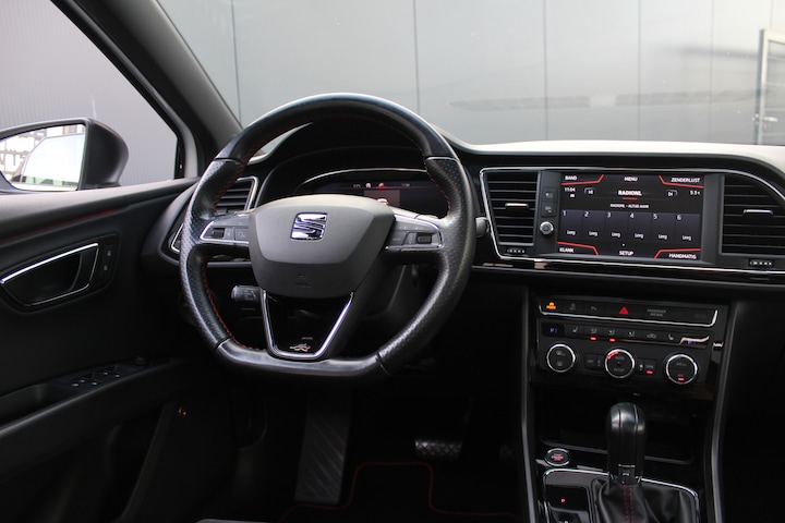 Honderd procent auto. Plus een stevige dosis gevoel. Dat noemen ze bij Seat auto emocion. De krachtige benzinemotor van deze auto is gekoppeld aan een automatische transmissie. Koude start? Niet met de verwarmbare voorstoelen! Ziet er goed uit, die sportstoelen. Maar waar het om gaat, is de solide zit onder alle omstandigheden. Qua licht en ruimtelijk gevoel zit het helemaal goed met het elektrisch bediende panoramadak. Verder is de SEAT uitgerust met: 18 inch lichtmetalen velgen, LED koplampen, sportonderstel, zwarte hemelbekleding, donker getint glas achter en in delen neerklapbare achterbank.
