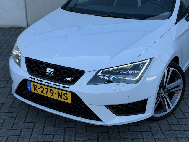 Autohuis Ter Laare biedt deze SEAT Leon ST 2.0 TSI Cupra 280, met automatische DSG-transmissie, aan in de bijzondere lichtgrijze kleur Dynamic Grau! Deze auto is uitgevoerd met opties waaronder een glazen panoramisch schuif-/kanteldak, Full Map navigatiesysteem met Bluetooth (bellen en muziek streamen) en DAB+, half leder/alcantara interieur met verwarmbare voorstoelen, SEAT Sound premium geluidssysteem inclusief subwoofer, isofix, zwarte dakhemel, LED koplampen & achterlichten, DCC dynamisch onderstel, Cupra instaplijsten, climate control, adaptieve cruise control i.c.m. lane assist, ambiente verlichting, privacy glass, multifunctioneel lederen stuurwiel met F1-flippers en een automatisch dimmende binnenspiegel i.c.m. licht-/regensensor.