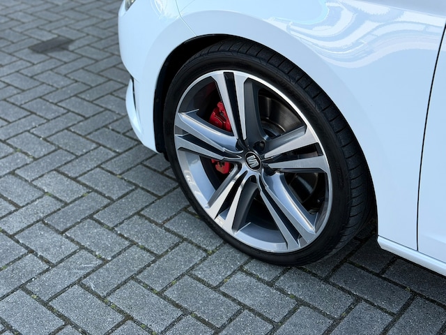 De auto staat op de 19’’ (originele) Cupra Performance velgen inclusief slotbouten. De Leon wordt afgeleverd met ‘’luxe’’ kentekenplaten (met opgelegde letters/cijfers).