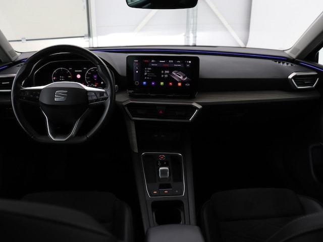 Met het digitale dashboard heeft u essentiële info in beeld. Altijd, overal. Soepel inparkeren gaat gemakkelijker dan u verwacht dankzij de achteruitrijcamera. Adaptive cruise control is een comfortabele en veilige optie. Het systeem reguleert de snelheid en houdt automatisch afstand tot uw voorligger. Dankzij Connected Services heeft u overal en altijd uw dashboard op zak. Alle belangrijke functies zijn te checken via de app. Uw veiligheid op de weg wordt verhoogd door het audiosysteem met DAB-ontvangst en het full map navigatiesysteem te bedienen vanaf het stuur of met spraakbediening, zodat uw handen veilig op het stuur blijven en uw ogen gericht zijn op de weg. De uitrusting van deze SEAT is met automatische airconditioning, regensensor, sportstuurwiel, automatisch dimmende binnenspiegel, centrale deurvergrendeling met afstandsbediening en lederen versnellingspook behoorlijk compleet.