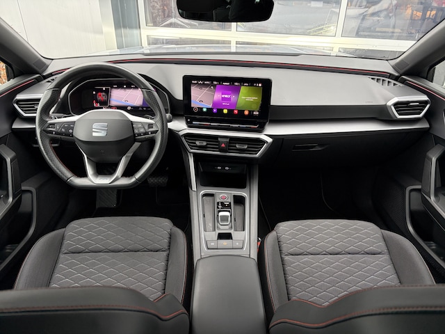 Binnenin geniet je van sportieve FR-details, waaronder sportstoelen met stoelverwarming, een verwarmd stuurwiel en een overzichtelijk infotainmentsysteem. Dankzij het Launch Edition-pakket is deze Leon bovendien rijker uitgerust dan de standaard FR-uitvoering.