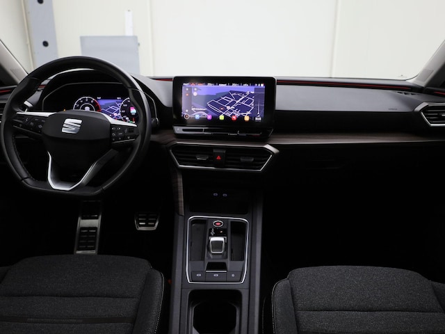 Natuurlijk brengt het digitale dashboard alle ritinformatie perfect in beeld. Maar ook communicatie, navigatie en tal van andere functies zijn permanent te volgen. Als u de adaptive cruise control inschakelt, regelt de auto zelf de snelheid en de afstand tot de auto voor u. Pech of storing, altijd vervelend. Maar met Connected Services weet u direct wat eraan scheelt. En dus ook wat er moet gebeuren. U kunt tijdens de rit uw ogen steeds op de weg houden, want het audiosysteem (met dab!) en het navigatiesysteem kunt u bedienen vanaf het stuur. Deze SEAT Leon is een complete auto anno nu, en dat merk je. Bijvoorbeeld door de aanwezige draadloze oplaadmogelijkheid voor telefoons. De SEAT is standaard voorzien van: automatische airconditioning, parkeersensoren achter, regensensor, keyless entry, automatisch dimmende binnenspiegel en centrale deurvergrendeling met afstandsbediening.