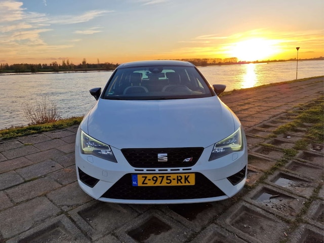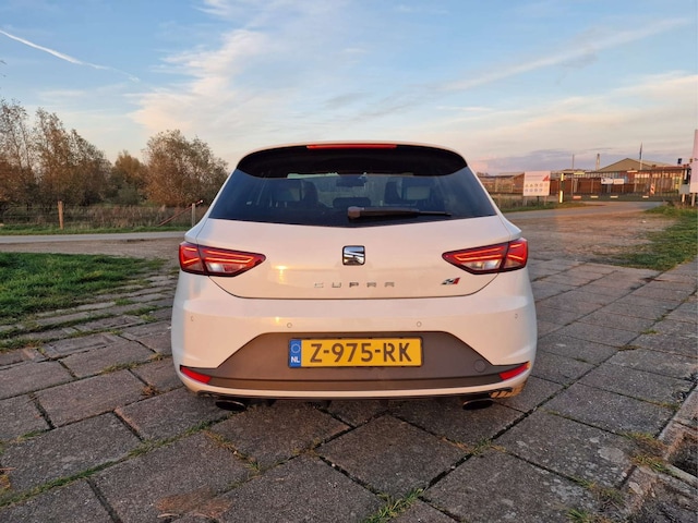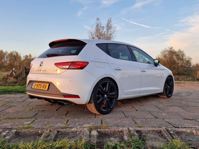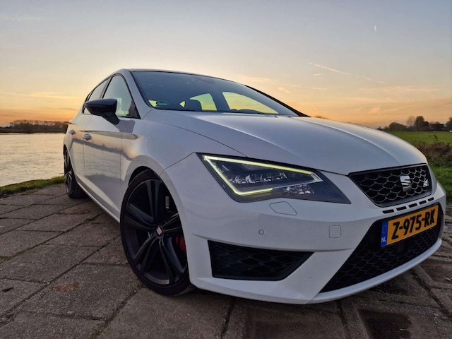 Dit exemplaar is voorzien van bijna alle opties! U zult vinden: een panoramadak, LED-koplampen met automatische grootlichtassistent, zwart lederen bekleding met witte accenten, “DCC” Dynamic Chassis Control adaptief dempersysteem met verlagingsveren van H&R, “ACC” adaptieve cruise control met rijassistentiesystemen als rijstrookassistent en botswaarschuwing, touchscreen navigatiesysteem met bluetooth telefoonkoppeling, stoelverwarming, origineel alarmsysteem klasse III, SEAT Sound audiosysteem met origineel in de kofferruimte geïntegreerde subwoofer, origineel af-fabriek privacy glass, 19” zwart gespoten Cupra velgen met daarachter rode remklauwen, spiegelpakket met automatisch dimmende, in- en neerklapbare en verwarmde functie, parkeersensoren rondom, stuurwiel met schakelflippers, regen- en lichtsensor, interieursfeerverlichting, gescheiden automatische klimaatregeling, etc. etc.