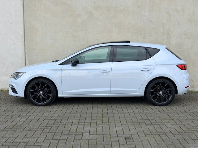 Autohuis Ter Laare biedt deze SEAT Leon FR 1.5 TSI aan in de bijzondere kleur Dynamic Grau (lichtgrijze kleur)! Deze Black Matt Edition is voorzien van opties waaronder een glazen panoramisch schuif-/kanteldak, virtual cockpit, Full Map navigatiesysteem met Bluetooth (bellen en muziek streamen), DAB+, Apple CarPlay/Android Auto, half leder/alcantara interieur met verwarmbare voorstoelen, zwarte dakhemel, LED koplampen, achterlichten & mistlampen, DCC dynamisch onderstel, climate control, cruise control, de meest uitgebreide RGB ambiente verlichting, privacy glass, multifunctioneel lederen stuurwiel, wireless charger en een automatisch dimmende binnenspiegel i.c.m. licht-/regensensor.