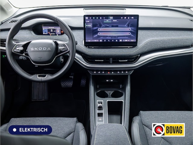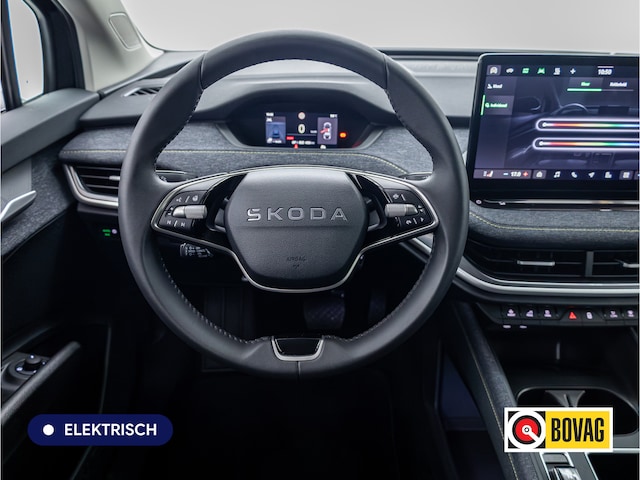 Deze ŠKODA Elroq is innovatie op zijn best. Hij is ontworpen als een unieke combinatie van rijplezier en zorg voor het milieu. Eindelijk elektrisch rijden? Deze auto is voorzien van een elektromotor. Dus stil, schoon én snel! Een krachtige motor geeft deze auto zijn sportieve prestaties. Lekker hoor, die verwarmbare voorstoelen. Helemaal op koude dagen. De uitmonstering van deze auto wordt gecompleteerd door onder meer 19 inch lichtmetalen velgen, LED koplampen, extra getint glas, in delen neerklapbare achterbank en LED-achterlichten.