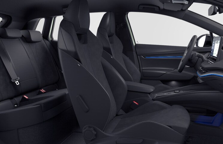 Zoals je mag verwachten van deze ŠKODA Elroq is hij uitgerust met een reeks aan actieve veiligheidssystemen. Het Lane-keeping systeem zorgt dat je mooi binnen de lijntjes blijft. Ongemerkt buiten de rijstrook komen is er niet meer bij. Het systeem van forward collision warning, of in gewoon Nederlands 'botswaarschuwing', treedt in werking als de sensor te weinig afstand signaleert met een voor- of tegenligger. Vermoeid achter het stuur zitten vergroot de kans op een ongeval. Vermoeidheidsherkenning waarschuwt tijdig als je aan een rustpauze toe bent. Dankzij veiligheidsvoorzieningen als dodehoekdetectie, autonoom remsysteem en bandenspanningcontrolesysteem, ben je steeds veilig onderweg.