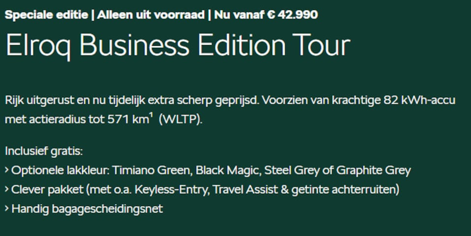 | Prijs excl. BTW | € 36.884 excl. BTW |