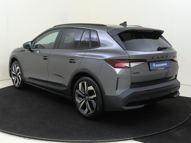 Daarnaast is deze Elroq standaard al uitgerust met bijvoorbeeld sportline suedia / leder interieur, sportstoelen, sportstuurwiel, sport onderstel, dakrailing in hoogglans zwart, getint glas achter, 13” multimediasysteem met navigatie, verwarmbaar stuurwiel, climate control met 2 klimaatzones, parkeersensoren voor en achter, achteruitrijcamera, LED koplampen, LED achterlichten, LED interieurverlichting met sfeerverlichting, verwarmbare voorstoelen, dodehoeksensoren, middenarmsteun voor, elektrisch verstel-, verwarm-, en inklapbare buitenspiegels, draadloze Android Auto & Apple Carplay, 19” lichtmetalen velgen, snellaadcapaciteit tot 175kW, 5 jaar gratis onderhoud, etc.