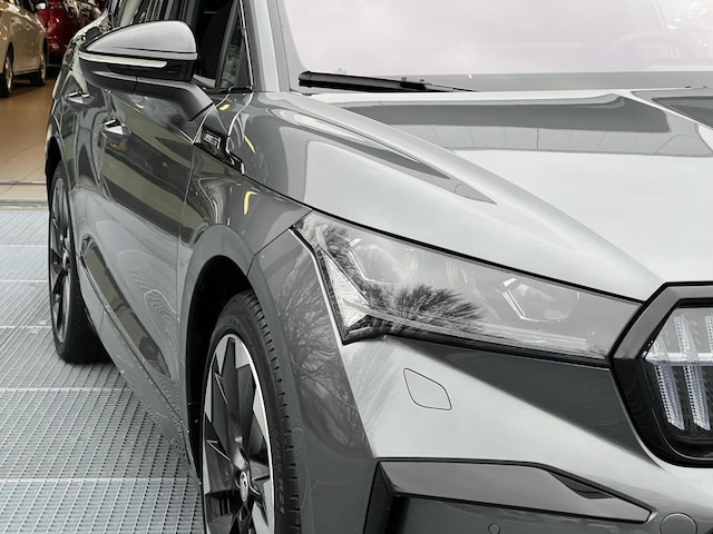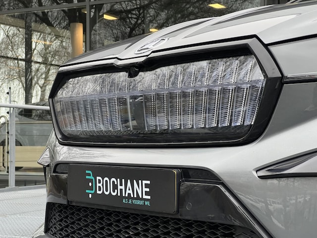 Sportieve prestaties zonder motorgeluid. Ervaar de stille kracht van elektrisch rijden met deze Skoda Enyaq Coupé iV. Nooit meer naar de pomp! De elektromotor opladen en rijden maar! De achterbankverwarming, het verwarmbare stuurwiel en de verwarmbare voorstoelen brengen passagiers en bestuurder snel weer op temperatuur, ongeacht hoe koud het buiten is. Met een druk op de knop gaat de elektrische achterklep open. Het interieur lijkt groter en ruimtelijker dankzij het glazen panoramadak. De koplampen zijn voorzien van de allernieuwste lichttechnologie: matrix LED-verlichting. Tot de uitrusting behoren ook sportonderstel, geluidsisolerende ramen, in delen neerklapbare achterbank, LED-achterlichten, verstelbare lendensteunen en verwarmde ruitensproeiers.