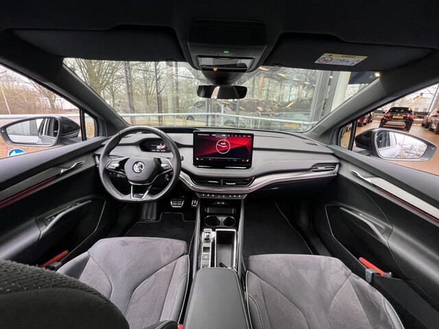 Sportieve prestaties zonder motorgeluid. Ervaar de stille kracht van elektrisch rijden met deze Skoda Enyaq Coupé iV. Nooit meer naar de pomp! De elektromotor opladen en rijden maar! De achterbankverwarming, het verwarmbare stuurwiel en de verwarmbare voorstoelen brengen passagiers en bestuurder snel weer op temperatuur, ongeacht hoe koud het buiten is. Met een druk op de knop gaat de elektrische achterklep open. Het interieur lijkt groter en ruimtelijker dankzij het glazen panoramadak. De koplampen zijn voorzien van de allernieuwste lichttechnologie: matrix LED-verlichting. Tot de uitrusting behoren ook sportonderstel, geluidsisolerende ramen, in delen neerklapbare achterbank, LED-achterlichten, verstelbare lendensteunen en verwarmde ruitensproeiers.