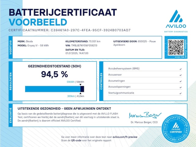Accu: 60 kWh, Conditie: 94%