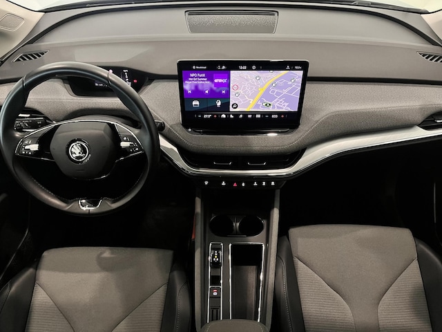 Een nieuw tijdperk breekt aan. Emissievrij rijden is niet langer toekomstmuziek met deze elektrische Skoda Enyaq iV. De techniek van deze auto is radicaal anders dan u gewend bent. U rijdt zacht zoemend naar uw bestemming, de actieradius van de accu's is ruimschoots voldoende voor de meeste dagelijkse ritten. Bij de rijke uitrusting horen ook 19 inch lichtmetalen velgen, LED koplampen, in hoogte verstelbare passagiersstoel, in delen neerklapbare achterbank, LED-achterlichten en verstelbare lendensteunen.