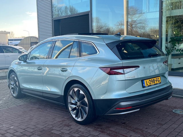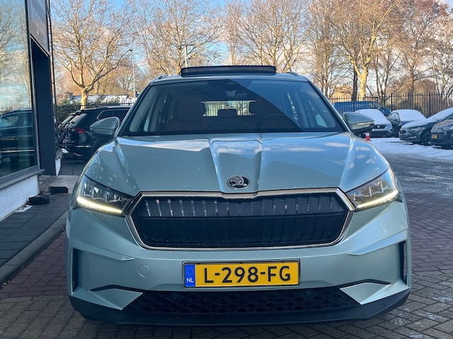 Met de ŠKODA Enyaq iV kies je voor het rijplezier van de toekomst. De volledig elektrische aandrijflijn zorgt voor krachtige prestaties en een sensationeel acceleratievermogen. Stil en stevig optrekken zonder extra uitstoot? De elektromotor zorgt ervoor! De krachtige motor geeft deze ŠKODA uitstekende prestaties. Met het lederen interieur ervaar je direct het gevoel van luxe en comfort. Tijdens gure dagen is het prettig zitten in de verwarmbare voorstoelen. Het interieur lijkt groter en ruimtelijker dankzij het glazen panoramadak. Bij de rijke uitrusting horen ook 21 inch lichtmetalen velgen, LED koplampen, in delen neerklapbare achterbank, LED-achterlichten en verstelbare lendensteunen.