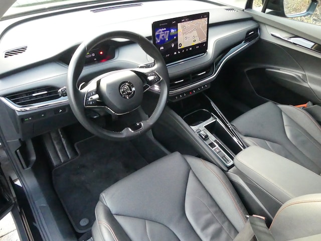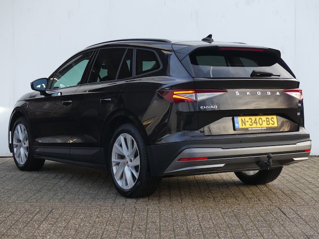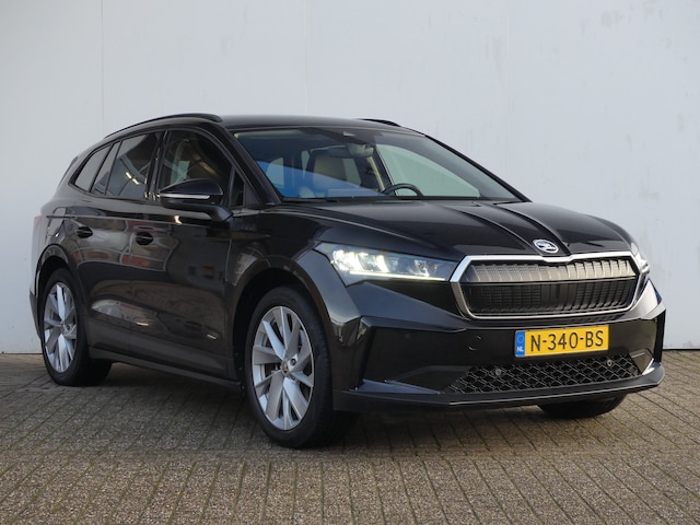 Met de Škoda Enyaq kiest u voor het rijplezier van de toekomst. De volledig elektrische aandrijflijn zorgt voor krachtige prestaties en een sensationeel acceleratievermogen. U wordt actief onderdeel van de energietransitie met de elektromotor. Een krachtige motor geeft deze auto zijn sportieve prestaties. Het interieur van deze auto is bekleed met leer voor een ongeëvenaard luxueuze uitstraling. Dankzij de stoelverwarming, verwarmbare achterbank en het verwarmbare stuur in deze auto, krijgt het begrip rijcomfort een nieuwe betekenis. De achterklep opent automatisch met een druk op de knop. Handig als u met volle handen staat. Natuurlijk behoren 20 inch lichtmetalen velgen, LED koplampen, in delen neerklapbare achterbank, LED-achterlichten en verstelbare lendensteunen ook tot de uitrusting van deze complete auto. Alle functies die u onderweg nodig heeft, worden permanent geregistreerd en zijn afleesbaar op het digitale dashboard. Soepel inparkeren in de krapste parkeervakken. De achteruitrijcamera maakt het mogelijk. Spraaksturing maakt het eenvoudiger en veiliger om deze auto onderweg te bedienen. Via uw smartphone en Connected Services checkt u eenvoudig de belangrijke functies van de auto, overal en altijd. De snelste of zuinigste weg? Het full map navigatiesysteem aan boord wijst de juiste weg! Deze Škoda is voorzien van electronic climate control, DAB ontvangst, regensensor, cruise control, keyless entry en automatisch dimmende binnenspiegel. De nieuwste veiligheidssystemen komen in deze Škoda Enyaq samen. Deze Škoda Enyaq is ook behulpzaam als het gaat om een rechte koers. Het Lane-keeping systeem signaleert en corrigeert als u onbedoeld de rijstrooklijnen dreigt te overschrijden. Het systeem van forward collision warning, of in gewoon Nederlands 'botswaarschuwing', treedt in werking als de sensor te weinig afstand signaleert met een voor- of tegenligger. Het systeem voor vermoeidheidsherkenning neemt het waar als uw concentratie verslapt en geeft u dan een waarschuwing. In deze Škoda vinden we verder een autonoom remsysteem en bandenspanningcontrolesysteem. Deze elektrische auto staat klaar met een volle accu. Een proefrit maken is zo geregeld. Neem even contact op en we maken een afspraak!