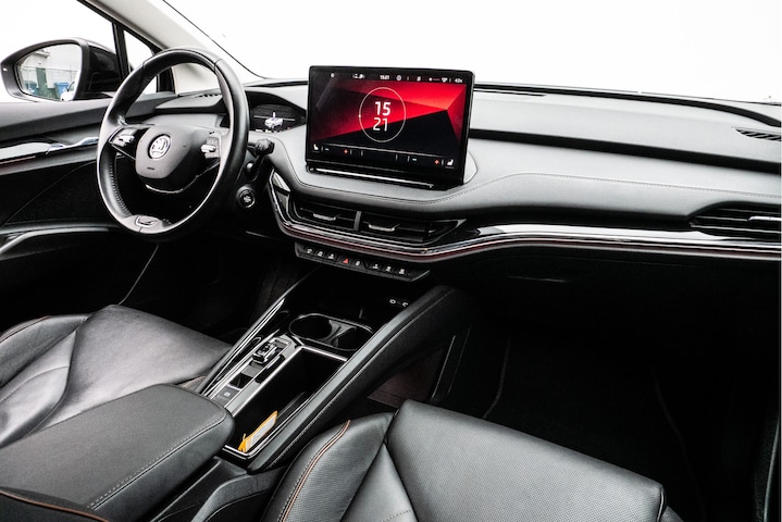 U voelt de onbeperkte kracht van elektrische aandrijving, elke keer als u op weg gaat met deze ŠKODA Enyaq iV. Nooit meer naar de pomp! De elektromotor opladen en rijden maar! Een krachtige motor geeft deze auto zijn sportieve prestaties. Een praktische extra is de elektrisch bedienbare achterklep die opent en sluit met een druk op de knop. Bij de uitrusting van deze auto horen onder meer 21 inch lichtmetalen velgen, LED koplampen, halflederen bekleding, in hoogte verstelbare passagiersstoel, in delen neerklapbare achterbank en LED-achterlichten.