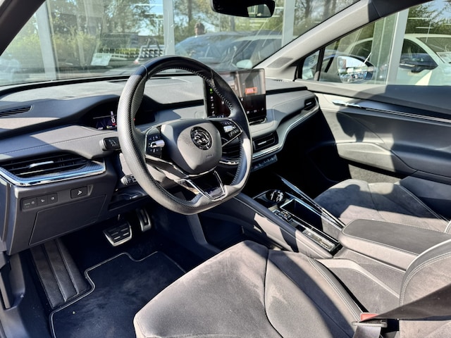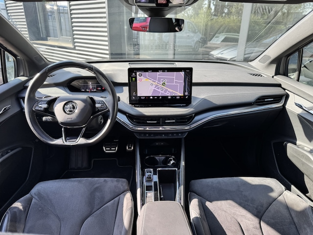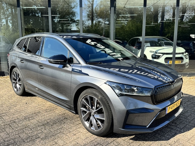 Deze ŠKODA Enyaq iV is innovatie op zijn best. Hij is ontworpen als een unieke combinatie van rijplezier en zorg voor het milieu. Gas geven is er met de elektromotor niet meer bij. Stil snelheid maken wel! De krachtige motor geeft deze ŠKODA uitstekende prestaties. Bestuurder en bijrijder krijgen een warm welkom: deze ŠKODA Enyaq iV is voorzien van verwarmbare voorstoelen. De elektrische achterklep opent met een druk op de knop, zodat u gemakkelijk toegang heeft tot de bagageruimte. Vergeet halogeen; deze koplampen gebruiken de allernieuwste matrix LED-technologie met maximale lichtopbrengst zonder de tegenligger te hinderen. Ook 20 inch lichtmetalen velgen, sportonderstel, donker getint glas achter, in delen neerklapbare achterbank, LED-achterlichten en verstelbare lendensteunen zijn aan boord. Snelheid, omgevingsinfo, navigatie en communicatie... Het digitale dashboard geeft alles realtime weer. Alles vrij achter? De achteruitrijcamera laat het meteen zien. Adaptive cruise control is veilig en comfortabel. De snelheidsregelaar houdt automatisch afstand tot het voertuig dat voor u rijdt. De file assistent verzacht het fileleed door automatisch veilig afstand te houden tot de voorligger en zo nodig zelfs te stoppen als de rij tot stilstand komt. Locatie, motorconditie, storingen... via Connected Services krijgt u alle vitale info over de auto door. Ook handig bij pech! U bent in deze ŠKODA ook voorzien van dashboard met spraakbediening, full map navigatiesysteem, electronic climate control, draadloos opladen, DAB ontvangst en regensensor.