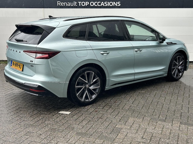 Innovatieve toptechniek en een uitgesproken karakter. De Skoda Enyaq iV is een onderscheidende auto met een elektrische aandrijflijn. Dankzij de automatische transmissie en elektrische aandrijving, navigeert u gemakkelijk door het verkeer. In de verwarmbare voorstoelen zitten is elke keer een welkom gevoel. Hoe koud het buiten ook is, het verwarmbare stuurwiel brengt uw handen en vingers snel weer op temperatuur. Opvallend is de geavanceerde matrix LED-verlichting met daglichtkwaliteit. De koplampen dimmen automatisch het deel van de lichtstraal waar voor- of tegenliggers in rijden. De overige segmenten blijven aan en verlichten de weg maximaal. De uitmonstering van deze auto wordt gecompleteerd door onder meer 20 inch lichtmetalen velgen, sportonderstel, geluidsisolerende ramen, in delen neerklapbare achterbank, LED-achterlichten en verstelbare lendensteunen.