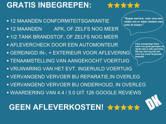 Optioneel afleverpakket (€ 895): BOVAG 12 maanden pakket (optioneel): - 12 maanden BOVAG Garantie, volledig - 12 maanden APK, of zelfs nóg langer - 1/2 tank brandstof, of zelfs nóg meer - Grote onderhoudsbeurt volgens richtlijnen - Accu 100% opgeladen bij elektrische auto's - Aflevercheck op meerdere controlepunten - Gereinigd in-, en exterieur voor aflevering -Tenaamstellen van de aangekochte auto - Vrijwaren van de eventueel ingeruilde auto - Vervangend vervoer bij reparaties, in overleg - Vervangend vervoer bij onderhoud, in overleg - Klanttevredenheid van 4,5 van de 5,0 sterren!!
