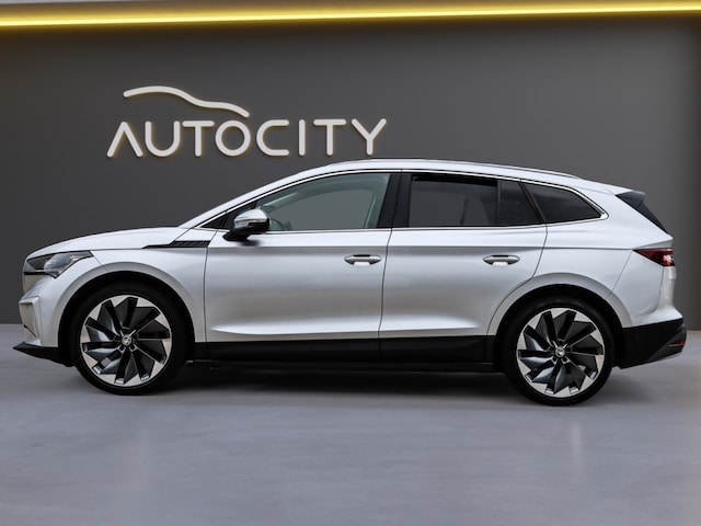 Met de aandrijfslipregeling (ASR) en het bandenspanningscontrolesysteem bent u altijd verzekerd van optimale grip en veiligheid, waardoor u met een gerust hart de weg op kunt. De vijf deuren van de Skoda Enyaq iV 80 ecoSuite maken het gemakkelijk om in en uit te stappen, terwijl de metallic lak de auto een extra luxe uitstraling geeft.