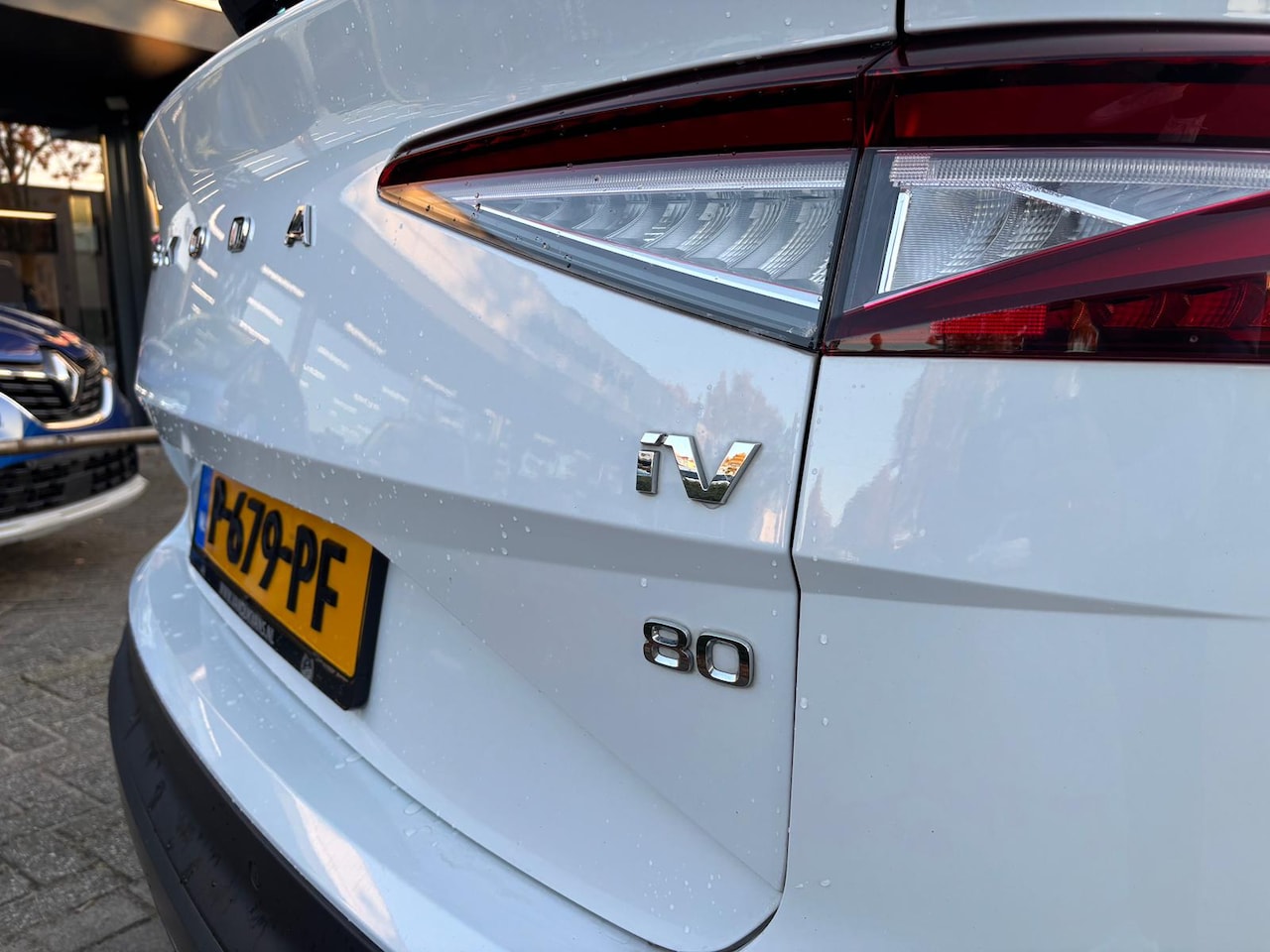 Skoda Enyaq iV - 80 KwH SOH 94% trekhaak Drive sport plus warmtepomp lederen bekleding wit metallic 21 inch