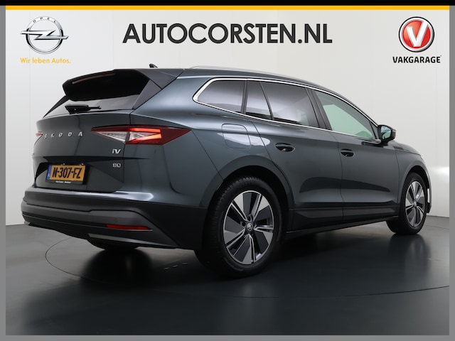 Innovatieve toptechniek en een uitgesproken karakter. De ŠKODA Enyaq iV is een onderscheidende auto met een elektrische aandrijflijn. Wat een rijervaring, die elektromotor. Forse actieradius, nul uitstoot en heerlijk pittig rijgedrag! De krachtige motor geeft deze ŠKODA uitstekende prestaties. Als we het over extra cachet hebben, moeten we zeker het lederen interieur noemen. In de verwarmbare voorstoelen zitten is elke keer een welkom gevoel. Een handige voorziening op deze auto is de elektrische achterklep die u op afstand kunt openen. Het glazen panoramadak zorgt ervoor dat u zich omringd voelt door de omgeving. In de winter wil iedereen mee. Zou dat komen door de verwarmde achterbank? Tot de uitrusting behoren ook 19 inch lichtmetalen velgen, LED koplampen, donker getint glas achter, in delen neerklapbare achterbank, LED-achterlichten en verstelbare lendensteunen.
