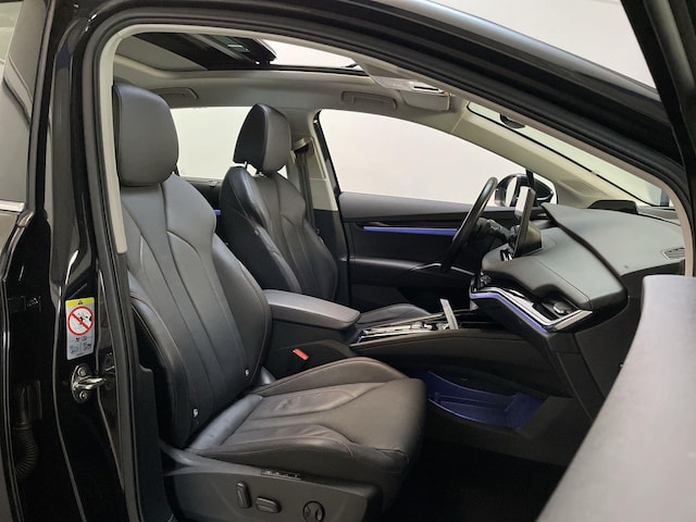 Alle technologie in de Skoda Enyaq iV is er op gericht om jouw rit veilig en gemakkelijk te laten verlopen. Terwijl jij de bagage inlaadt via de elektrisch bedienbare achterklep, nemen jouw passagiers al plaats in het lederen interieur. Mooi! Je zult absoluut de luxe waarderen van de stoelverwarming, verwarmbare achterbank, en het verwarmbare stuur dat inbegrepen is in dit voertuig. Een heerlijke hoeveelheid daglicht zorgt voor een riant en ruimtelijk effect door het glazen panoramadak. Ook LED koplampen, extra getint glas, in delen neerklapbare achterbank, LED-achterlichten en verstelbare lendensteunen horen tot de voorzieningen op deze auto.