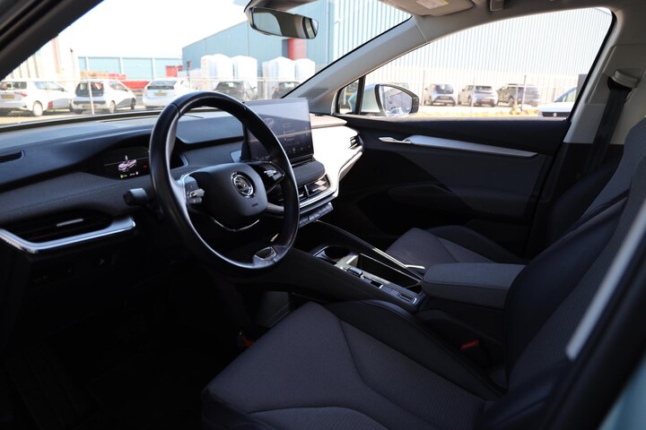 Hij is doordacht innovatief en duurzaam als geen ander: de elektrische Skoda Enyaq iV biedt met zijn elektrische aandrijving een ongekende rijervaring. De prestaties van de elektromotor kunnen de vergelijking met een brandstofmotor moeiteloos aan. Ga samen met uw bijrijder lekker zitten in de verwarmbare voorstoelen. De elektrisch bedienbare achterklep opent met een druk op de knop. Natuurlijk behoren 19 inch lichtmetalen velgen, LED koplampen, in delen neerklapbare achterbank, LED-achterlichten en verstelbare lendensteunen ook tot de uitrusting van deze complete auto.