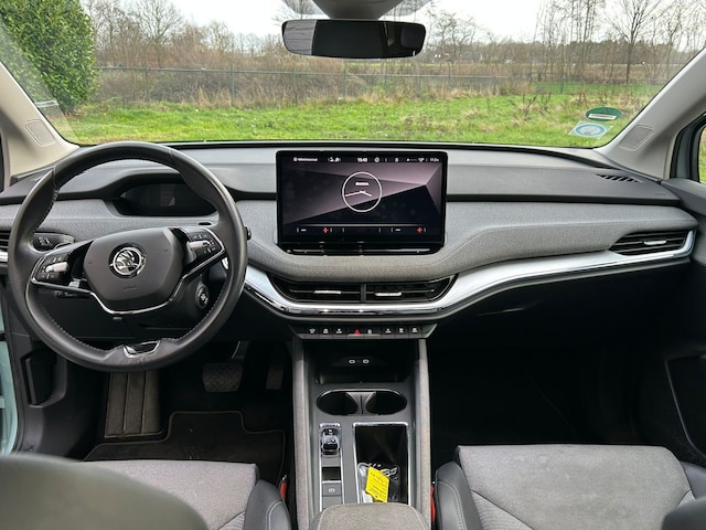 Altijd de benodigde functies in beeld? Het digitale dashboard zorgt ervoor. Met de achteruitrijcamera ziet u precies wat er achter de auto gebeurt. Adaptive cruise control is veilig en comfortabel. De snelheidsregelaar houdt automatisch afstand tot het voertuig dat voor u rijdt. Rijden-stilstaan, rijden-stilstaan. Niks is irritanter en vermoeiender dan filerijden. Daar heeft deze ŠKODA Enyaq iV een oplossing voor: de file assistent, die met radarmeting permanent het tempo aanpast op de voorligger. Zelfs als die stopt. Dankzij de spraaksturing bedient u verschillende functies zonder uw handen van het stuur te halen. En dan is deze auto ook nog eens voorzien van elektrisch inklapbare trekhaak, connected drive services, full map navigatiesysteem, automatische airconditioning, draadloos opladen en DAB ontvangst.