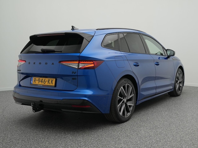 Hightech elektronica en emissievrij rijden komen samen in de Skoda Enyaq iV. Deze auto biedt een onvergelijkbare rijbeleving dankzij de volledig elektrische aandrijflijn. Je wordt actief onderdeel van de energietransitie met de elektromotor. Zelfs op de koudste dagen zorgen de stoelverwarming met massagefunctie, stuurverwarming en verwarmbare achterbank voor een comfortabele rijervaring. Een praktische extra is de elektrisch bedienbare achterklep die opent en sluit met een druk op de knop. Verblinding van tegenliggers is er niet meer bij, dankzij de koplampen met matrix LED-verlichting. En toch de kwaliteit van daglicht in het donker! Bij de uitrusting van deze auto horen onder meer 20 inch lichtmetalen velgen, sportonderstel, geluidsisolerende ramen, in delen neerklapbare achterbank, LED-achterlichten en verstelbare lendensteunen.
