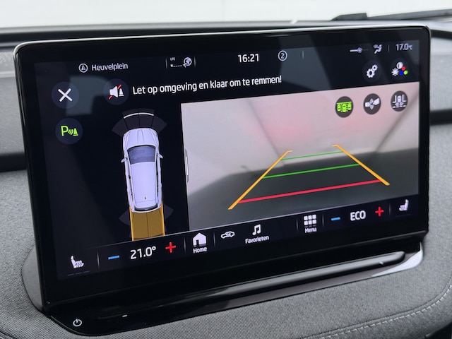 Verken de digitale wereld van mobiliteit waar het digitale dashboard alles biedt wat u nodig heeft om uw reis comfortabel te maken. Strak inparkeren wordt een fluitje van een cent door de achteruitrijcamera. Adaptive cruise control houdt de ingestelde snelheid vast en houdt afstand tot het voertuig voor u. Na een lange werkdag in de file: daar zit niemand op te wachten. Gelukkig helpt de file assistent een handje. Het radarsysteem meet de ruimte tot de voorligger en bewaakt de juiste afstand. Stilstaan? Dan remt en stopt de auto vanzelf. Deze ŠKODA Enyaq iV maakt het u makkelijk. Vandaar ook de elektrisch inklapbare trekhaak. Ook dashboard met spraakbediening, connected drive services, full map navigatiesysteem, automatische airconditioning, DAB ontvangst en regensensor zijn aan boord.