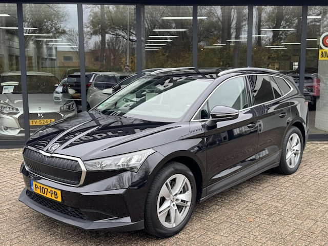 Schoonheid van buiten, schone techniek van binnen. Deze ŠKODA Enyaq iV maakt elektrisch rijden aantrekkelijker dan ooit. Op een volle acculading kan deze auto de gebruikelijke dagelijkse ritten allemaal maken. Het opladen gaat eenvoudig aan een openbare laadpaal of aan uw eigen oplaadpunt thuis. De krachtige motor geeft deze ŠKODA uitstekende prestaties. De bagageruimte is toegankelijk via een comfortverhogende elektrische achterklep. In deze ŠKODA profiteert u onder andere ook van: 19 inch lichtmetalen velgen, LED koplampen, halflederen bekleding, in hoogte verstelbare passagiersstoel, donker getint glas achter en in delen neerklapbare achterbank. Dankzij het digitale dashboard leest u alle benodigde info gemakkelijk en overzichtelijk af. Of u nu achteruit rijdt, parkeert of een smalle straat inslaat, de 360 graden camera op deze auto, mogelijk gemaakt door vier camera's, biedt een perfect beeld van uw omgeving. Adaptive cruise control houdt de ingestelde snelheid vast en houdt automatisch afstand tot uw voorligger. Rijden-stilstaan, rijden-stilstaan. Niks is irritanter en vermoeiender dan filerijden. Daar heeft deze ŠKODA Enyaq iV een oplossing voor: de file assistent, die met radarmeting permanent het tempo aanpast op de voorligger. Zelfs als die stopt. Spraakbediening herkent uw stem en voert opdrachten uit terwijl u beide handen aan het stuur houdt. De uitrusting van deze ŠKODA is met connected drive services, full map navigatiesysteem, electronic climate control, schakelpaddles aan het stuur, draadloos opladen en DAB ontvangst behoorlijk compleet.