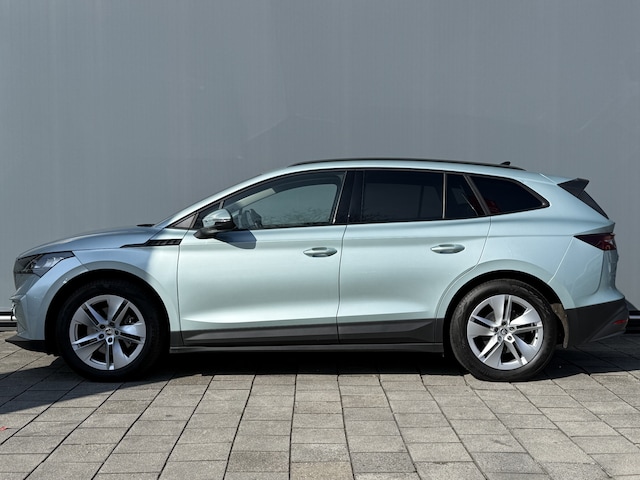 Met het digitale dashboard kunt u de cockpit-interface naar uw voorkeur instellen. Nooit meer parkeerschade dankzij de achteruitrijcamera. Vanaf elke plek contact maken met deze auto: dat kan met behulp van remote services, die u simpel activeert met uw smartphone. Het navigatiesysteem en het audiosysteem (met DAB-ontvangst!) bedient u met knoppen op het stuur of met gesproken commando's. Telefoon onderweg aan de lader? Daar komt geen kabeltje aan te pas, want deze ŠKODA Enyaq iV is voorzien van een draadloze oplaadmogelijkheid voor telefoons. De ŠKODA is standaard voorzien van: automatische airconditioning, regensensor, cruise control, keyless entry, automatisch dimmende binnenspiegel en centrale deurvergrendeling met afstandsbediening.
