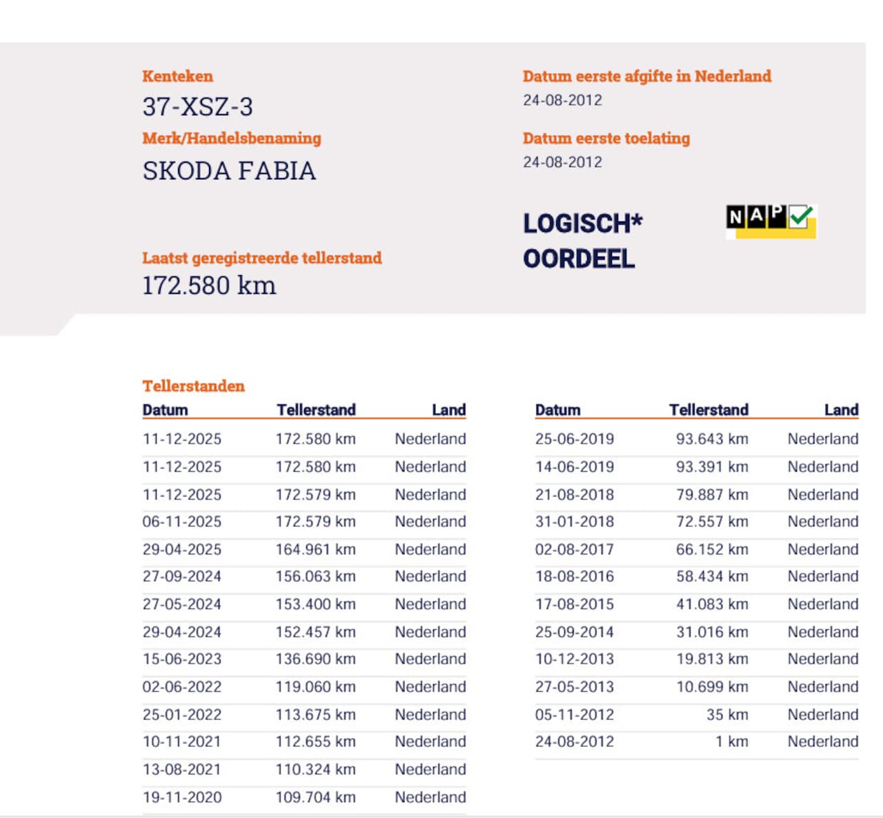 | Kilometerstand | 172.580 km |