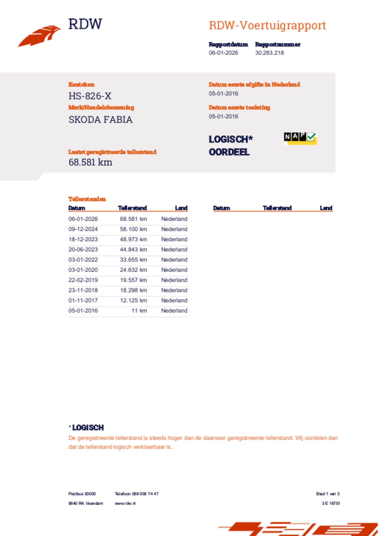 | Kilometerstand | 68.586 km |