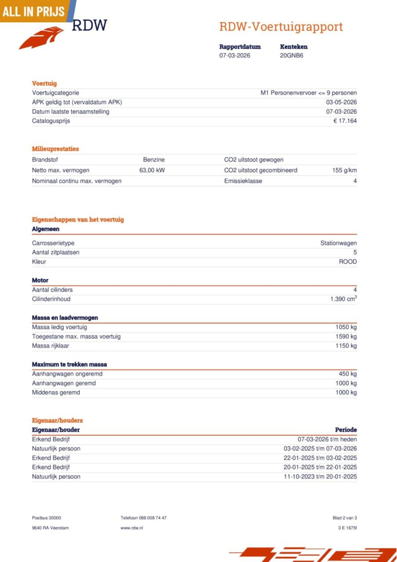 2008, Benzine, Handgeschakeld, Combi, Rood