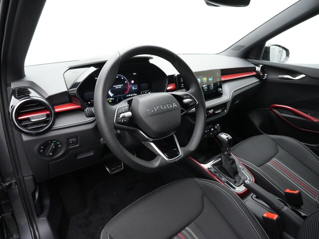 Deze Fabia is rijk uitgerust met onder andere 17 inch lichtmetalen velgen ‘Procyon Aero’, LED-koplampen, LED-achterlichten, Virtual cockpit, Climatronic automatische airconditioning, stoelverwarming, Keyless Entry & Start, achteruitrijcamera, parkeersensoren vóór en achter, Adaptive Cruise Control, Travel Assist, draadloze Apple CarPlay/Android Auto, sfeerverlichting interieur, elektrisch inklapbare en zelfdimmende buitenspiegels en Sunset privacy glass. Een samenstelling die hem duidelijk onderscheidt binnen zijn klasse.