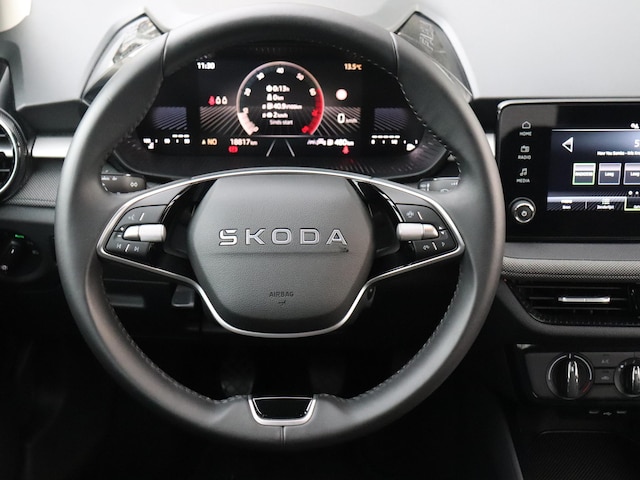 Tijdens de rit wordt je als bestuurder ondersteund door verschillende systemen die de weg en jouw omgeving in de gaten houden. Bij de veiligheidssystemen van deze Skoda hoort ook de verkeersbord-detectie. Die leest tijdens het rijden als het ware met je mee en attendeert je op de significante verkeersborden langs en boven de weg. Een camera houdt de juiste koers binnen de rijstrook in de gaten en het Lane-keeping systeem corrigeert bij afwijkingen. Forward collision warning is een automatisch waarschuwingssysteem dat direct in werking treedt bij gevaar voor een kop-staartbotsing. Bovenop deze veiligheidsfeatures heeft deze Skoda bovendien vermoeidheidsherkenning, autonoom remsysteem en bandenspanningcontrolesysteem.