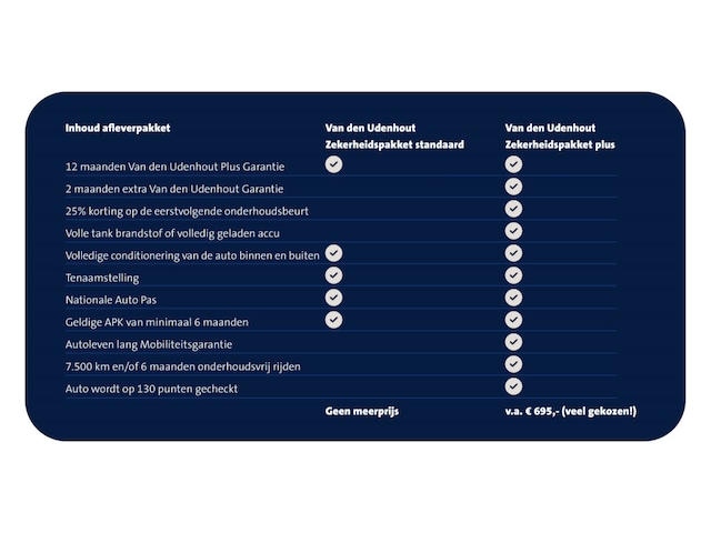 Voor extra zekerheid kiest u het Van den Udenhout zekerheidspakket. Bij aankoop van dit pakket kunt het volgende van ons verwachten: