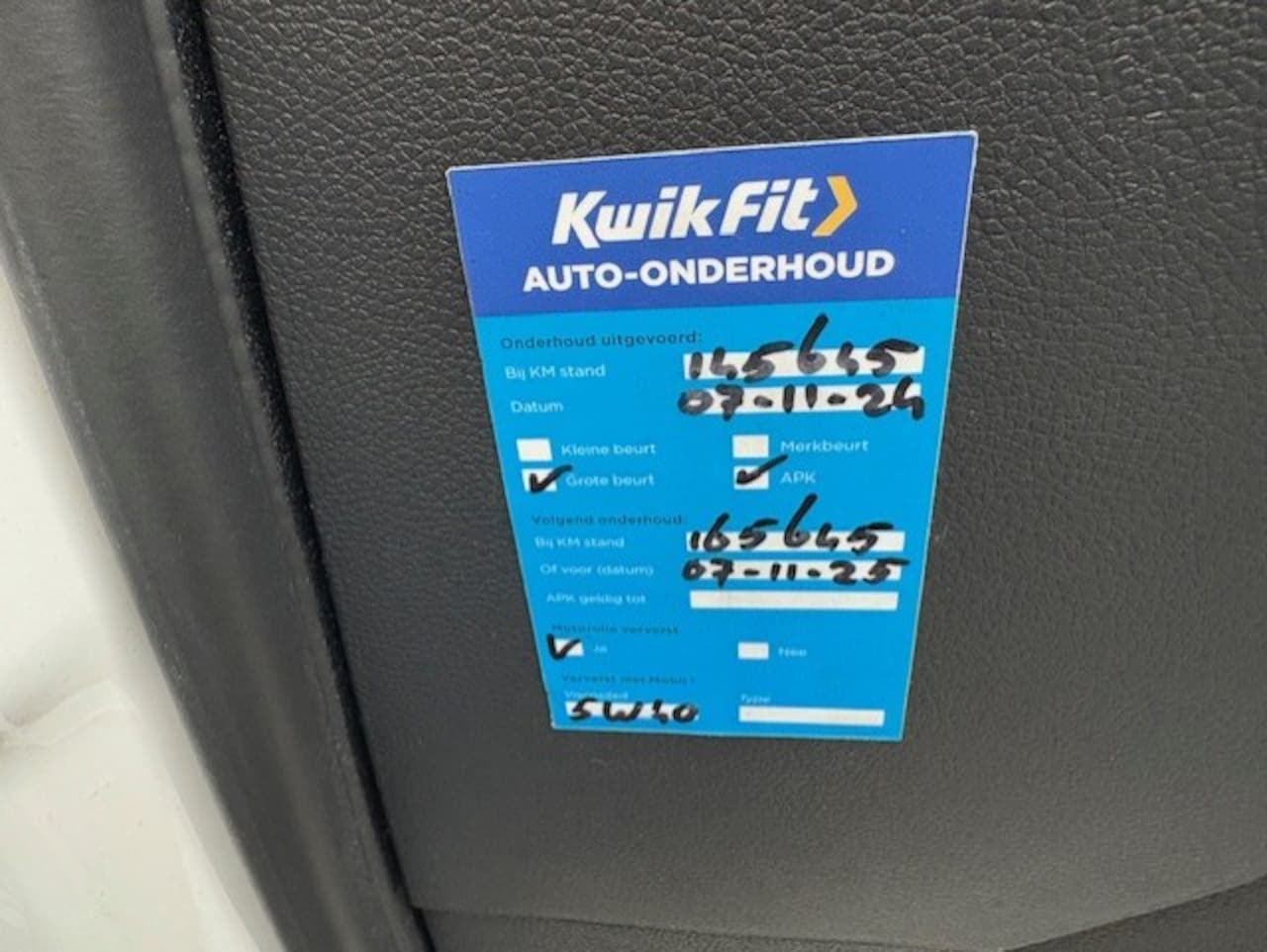 | APK | Bij aflevering |