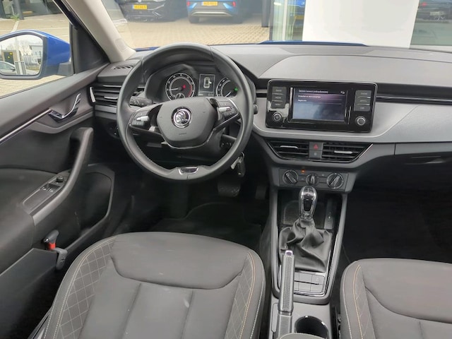 Deze ŠKODA Kamiq is voorzien van remote services. Via je smartphone bedien je diverse functies ook op afstand en krijgt je informatie over de status van je auto. Je bedient het audiosysteem met dab-radio via knoppen op het stuur. Zo kun je steeds jouw aandacht gericht houden op de weg. Een plekje vinden in de binnenstad is één, soepel inparkeren is twee. Voor dat laatste heeft deze ŠKODA Kamiq prima parkeersensoren die je een handje helpen. Ook fijn als je op de voorgeschreven snelheid wilt blijven: de cruise control. Het hele jaar door zorgt airconditioning voor een prettige temperatuur. Ook lederen stuur, centrale deurvergrendeling met afstandsbediening, boordcomputer en lederen versnellingspook zijn aan boord.