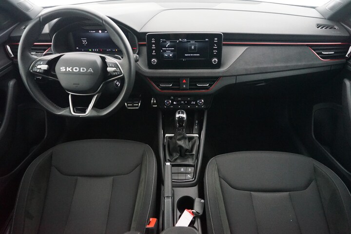 Altijd de benodigde functies in beeld? Het digitale dashboard zorgt ervoor. De achteruitrijcamera vergemakkelijkt achteruit inparkeren. U ziet duidelijk wat er achter de auto gebeurt. Deze auto gaat met u in gesprek. Hij vertelt u dankzij remote services alles over de status van diverse onderdelen en laat zich desgevraagd ook activeren. Gewoon via uw smartphone. U kunt het audio-installatiesysteem met dab-ontvangst bedienen met de knoppen op het stuur. Kabels niet nodig, de draadloze telefoonlader laadt uw smartphone al rijdend bij. U bent in deze ŠKODA ook voorzien van electronic climate control, schakelpaddles aan het stuur, cruise control, centrale deurvergrendeling met afstandsbediening, boordcomputer en lederen versnellingspook.