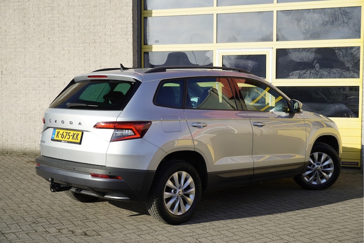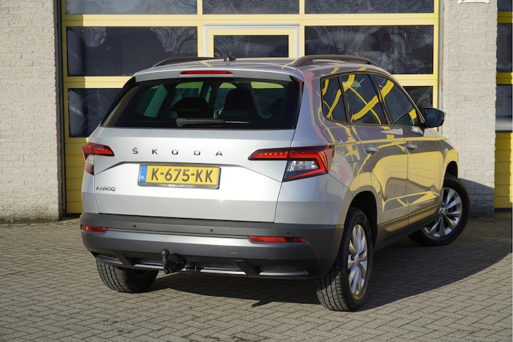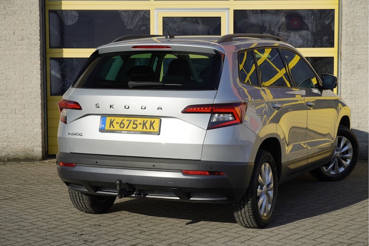 ŠKODA Karoq met de zeer luxe aanwezige opties als Lichtmetalen velgen | Led dagrijverlichting | Led achterlichten | Parkeersensoren | App-Connect | Navigatiesysteem | Virtual cockpit | Climate control | Cruise control | Verwarmde voorstoelen | Extra getint glas.