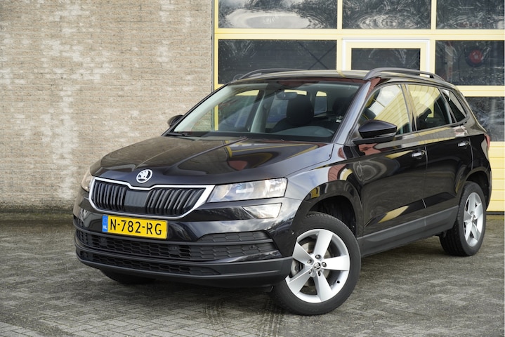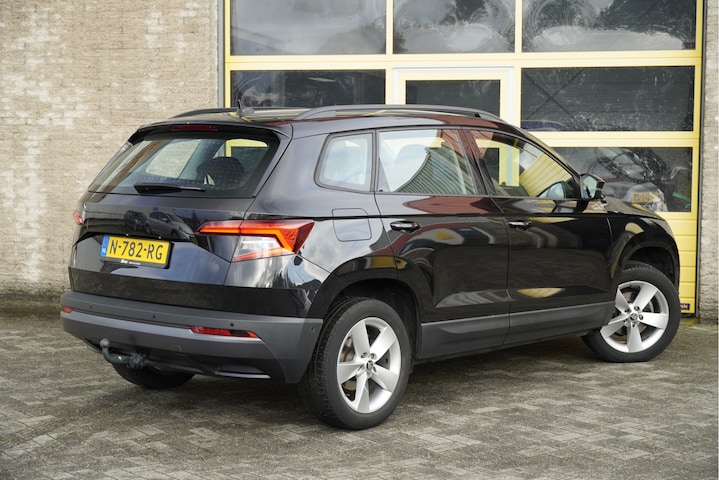 ŠKODA Karoq met de zeer luxe aanwezige opties als Lichtmetalen velgen | Led dagrijverlichting | Led achterelichten | Parkeersensoren | Trekhaak | App-Connect | Navigatiesysteem | Virtual cockpit | Climate control | Cruise control | Verwarmde voorstoelen | Getint glas.