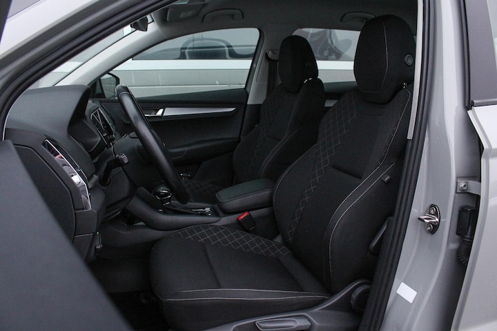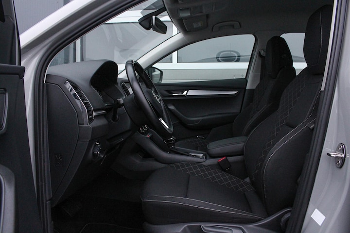 De Karoq is een ruime auto met een hoge zit en een comfortabele onderstel afstemming en is daardoor een prettige reisgezel voor zowel de korte als lange afstand. Zowel voor als achterin zit je als passagier prettig ruim en daarnaast kan er flink wat bagage meegenomen worden in de riante kofferbak. Daarnaast profiteert Skoda van de vele technieken die binnen de VAG groep beschikbaar zijn en is de maatstaf van goede bouwkwaliteit, mooi materiaalgebruik en uitgekiende ergonomie ook in alle Skoda producten doorgevoerd. Het exterieur van deze Karoq is uitgevoerd in het frisse en moderne Steel Gray en is verder voorzien van 17 inch Triton lichtmetalen vegen (origineel Skoda). Het interieur is uitgevoerd met stoffen bekleding in antraciet met zwart (waarbij gebruik is gemaakt van een sportieve ruitvormige afwerking op de wangen) en is afgewerkt met "chrome/ dark brushed" interieurlijsten.