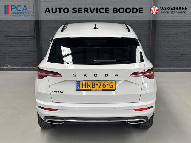 Zeer nette en complete Skoda Karoq met 1.5 liter benzinemotor met 150 pk, gekoppeld aan een 7-traps volautomatische versnellingsbak. In de sportieve Sportline uitvoering is deze auto o.a. voorzien van achteruitrijcamera, adaptieve cruise control met stop & go, Apple Carplay / Android Auto, carbonafwerking in interieur, DAB+ radio, dakrails, digitale cockpit, draadloze telefoonlader, hill-hold functie, keyless entry & start, lichtmetalen velgen 18 inch, navigatiesysteem, parkeersensoren voor en achter, sportstoelen, sportstuur, stoelverwarming, en stuurverwarming.