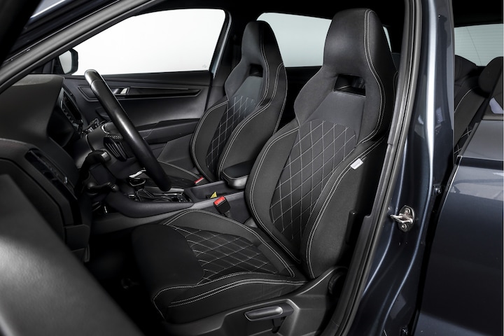 De Sportline-uitvoering onderscheidt zich met sportstoelen, een multifunctioneel lederen sportstuur en specifieke afwerkingsdetails. Binnenin vind je een volledig digitaal instrumentenpaneel, dat duidelijk en modern oogt.