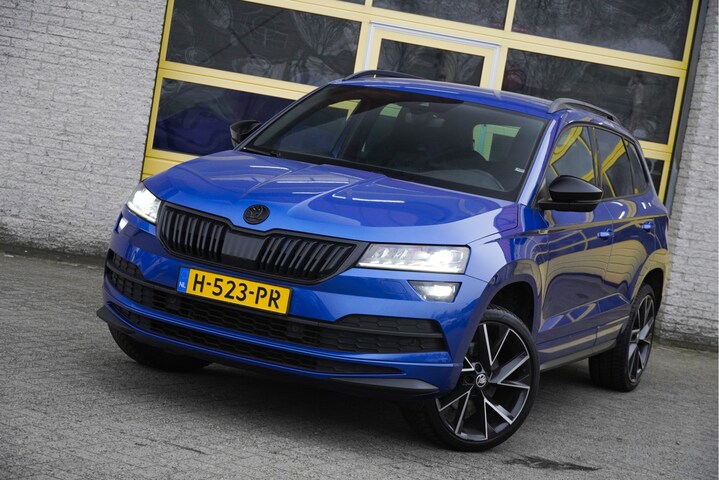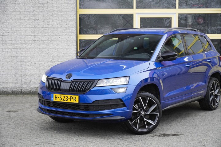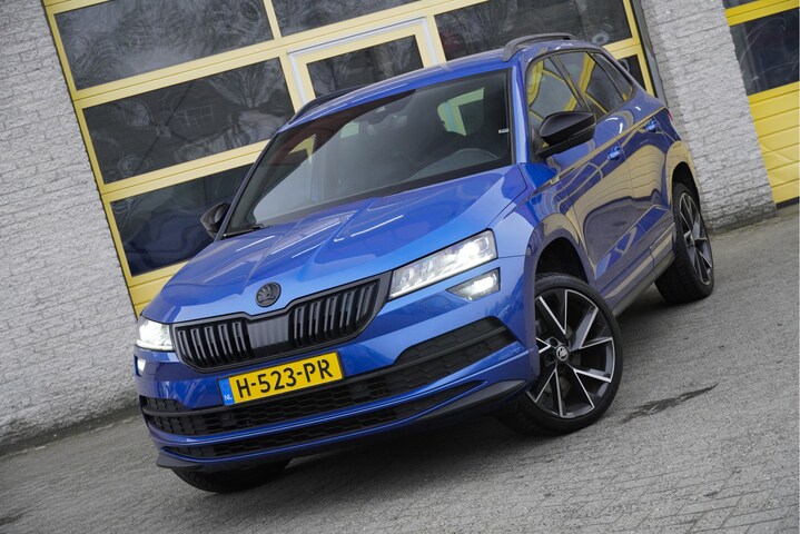 ŠKODA Karoq Sportline Automaat met de zeer luxe aanwezige opties als Lichtmetalen velgen | Led dagrijverlichting | Led koplampen | Led achterlichten | Led mistlampen | Keyless entry | Parkeersensoren | Afneembare trekhaak | Verwarmd voorruit | Elektrische achterklep | Achteruitrijcamera | App-Connect | Dashboard verlichting | Navigatiesysteem | Virtual cockpit | Climate control | Cruise control | Sportstoelen | Sport stuurwiel | Verwarmde voorstoelen | Zwarte hemel | Extra getint glas.