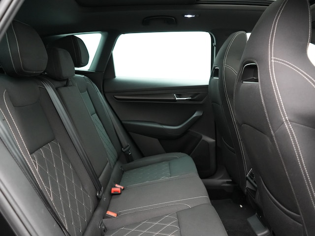 Hij zorgt voor een ontspannen rijervaring, deze ŠKODA Karoq. Het is een auto uit 2019, op de teller staat een kilometerstand van 97849. Hij heeft een benzinemotor en een automatische transmissie. In de verwarmbare voorstoelen zitten is elke keer een welkom gevoel. Zijwaartse g-krachten worden solide opgevangen door de sportstoelen. Volop licht en ruimtelijk gevoel geeft het elektrische bediende glazen panoramadak. Een handige voorziening op deze auto is de elektrische achterklep die u op afstand kunt openen. Bij de zeer complete uitrusting van deze auto behoren ook 19 inch lichtmetalen velgen, LED koplampen, donker getint glas achter, in delen neerklapbare achterbank, LED-achterlichten en verstelbare lendensteunen.