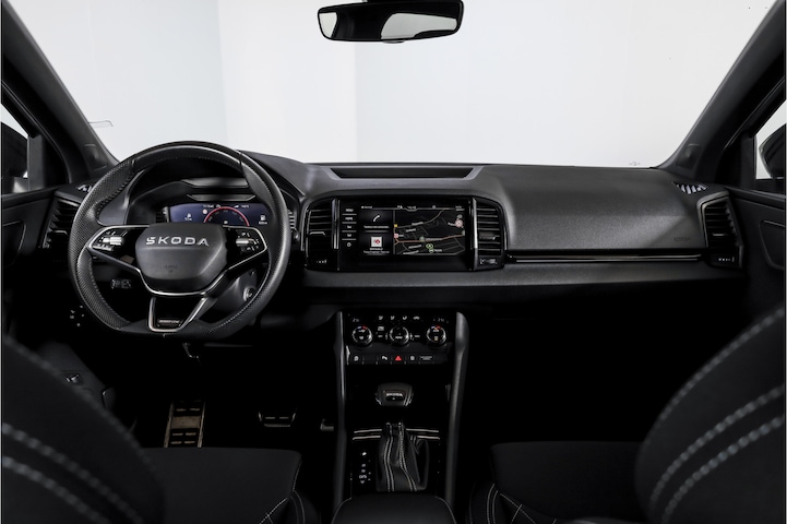 In het dagelijkse gebruik biedt deze Karoq veel praktische en moderne voorzieningen. De auto is uitgerust met automatische airco, een volledig digitaal instrumentenpaneel en een navigatiesysteem met full map-weergave, wat het rijden overzichtelijk maakt. Ook Apple CarPlay/Android Auto is aanwezig, zodat telefoonkoppeling eenvoudig en intuïtief verloopt.